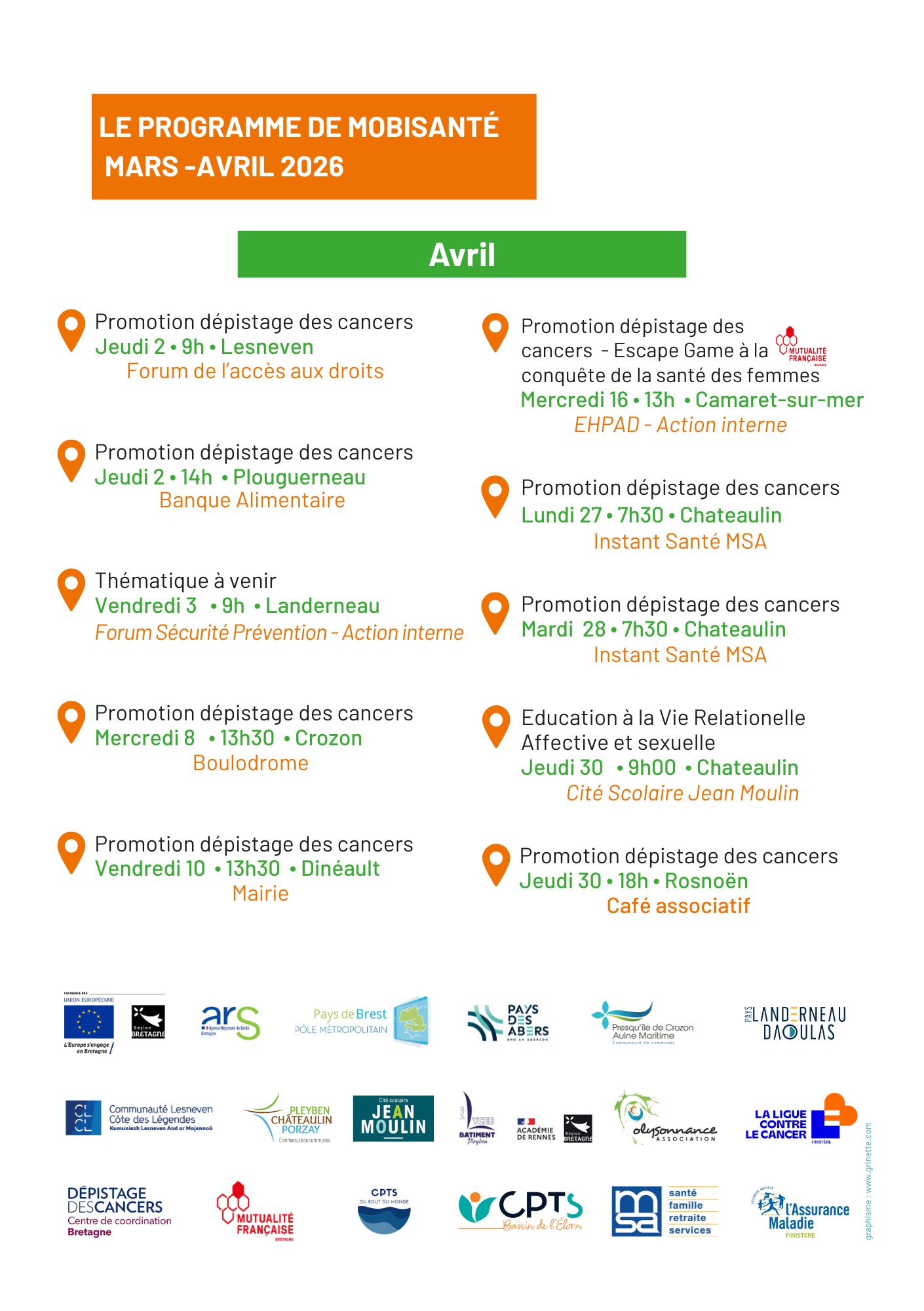 - le 8 janvier 2025 à la salle des fêtes de Châteaulin, 18h30-20h30.