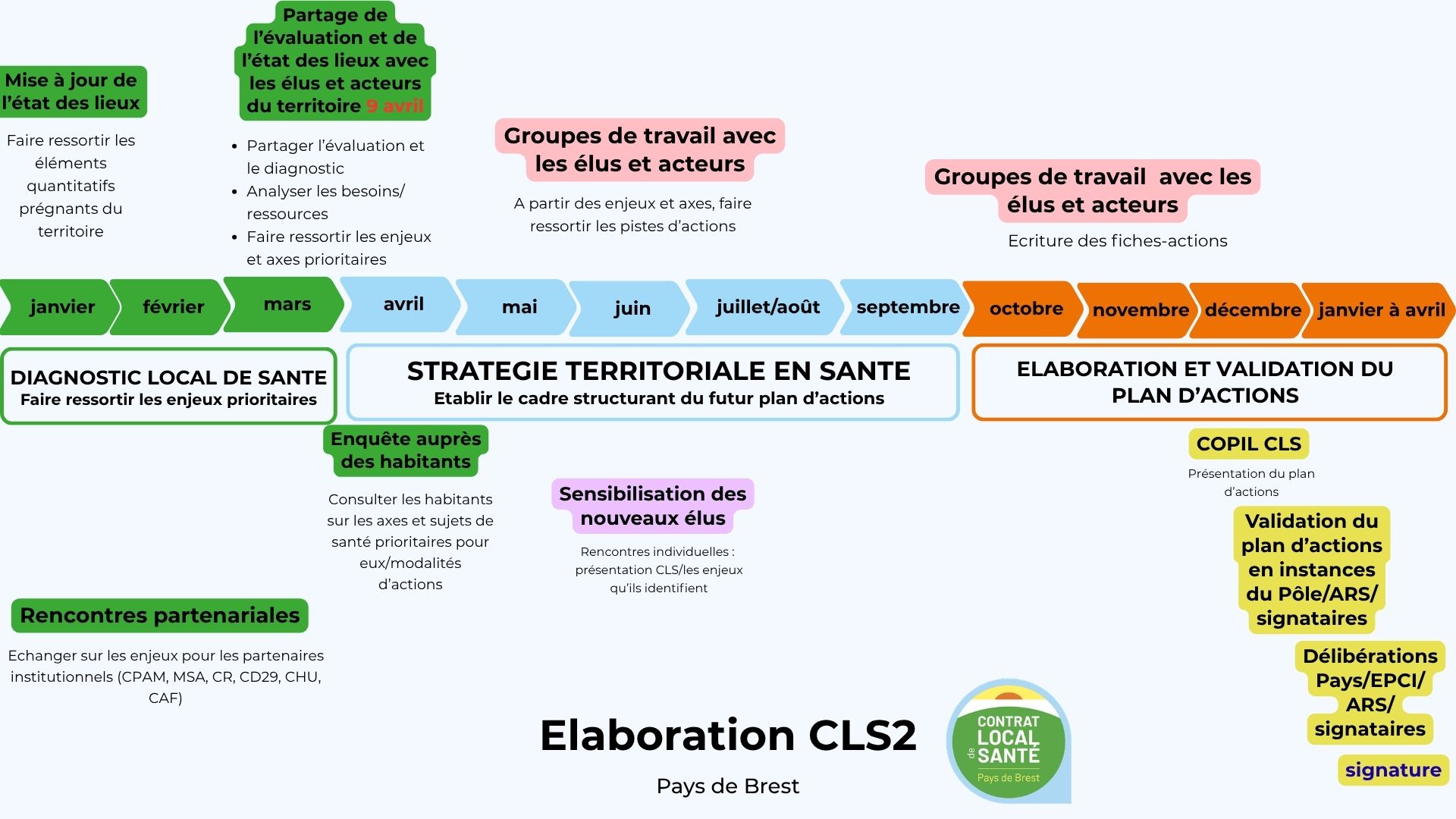 Un temps fort est organisé le 9 avril prochain à Plabennec, dans le cadre du renouvellement du CLS. Il a pour objectif de réunir les acteurs du territoire (élus, professionnels, représentants d’usagers) afin de : partager les résultats et préconisations de l’évaluation du CLS, présenter et enrichir le diagnostic, faire émerger les enjeux prioritaires du prochain CLS.
